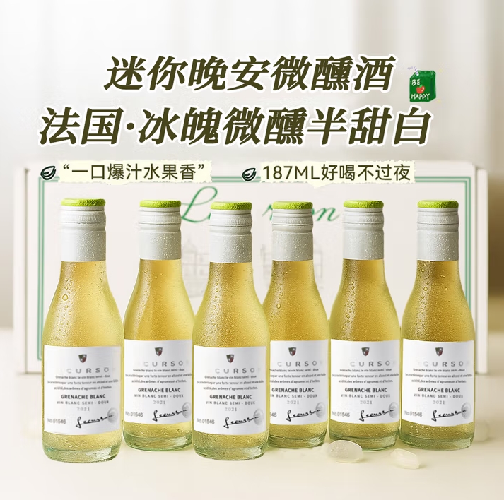 朗柏特法国进口半甜白葡萄酒女士微醺晚安果酒小酒原酒进口187ml礼盒装